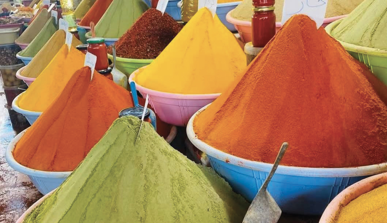 L’histoire de la ville plonge ses racines dans l’Antiquité. Ancienne cité punique puis romaine, elle fut longtemps un centre agricole et commercial important. Cette mémoire se découvre aujourd’hui au Musée archéologique de Nabeul, installé non loin du centre. À l’intérieur, mosaïques délicates, poteries anciennes et objets du quotidien racontent la vie des habitants d’autrefois. Le visiteur comprend alors que la richesse de Nabeul ne date pas d’hier, mais s’inscrit dans une continuité où chaque époque a laissé son empreinte. En sortant du musée, il suffit de marcher quelques minutes pour rejoindre le cœur vibrant de la ville : le Souk de Nabeul. Là, l’ambiance change immédiatement. Les odeurs d’épices flottent dans l’air mêlant la douceur de la cannelle, la force du cumin, la fraîcheur de la coriandre et la chaleur du piment séché. Par moments, une note de clou de girofle ou d’harissa s’intercale comme une invitation au voyage à travers la cuisine du Cap Bon.